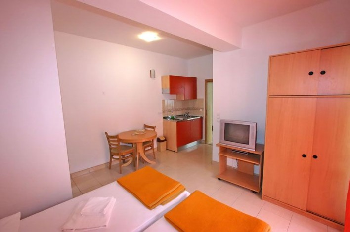 Apartmánový dům „Vesna***“ je situován cca 60 metrů od moře, studia i apartmány jsou zcela vybavené a klimatizované, součástí studií/AP je TV, SAT, WiFi. Velkou předností tohoto domu je sluneční terasa – solárium s venkovní sprchou, volně přístupná pro všechny klienty ubytované v AP domě. Na terase jsou stoly, židle a venkovní sprcha.